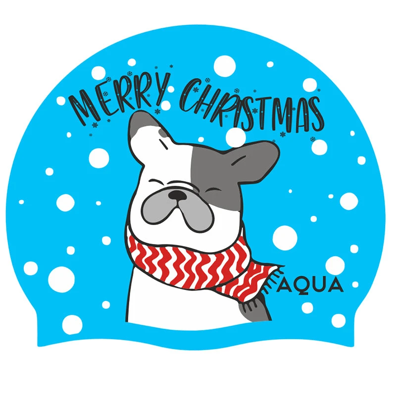 Rufus the Christmas Dog is a cute swim hat, perfect for the pool during the holiday season.