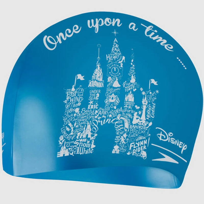 Bring a bit of Disney magic to the pool! Featuring Disney’s iconic Fairy Castle design, this blue junior swim cap is great for swimming lessons and club training. Designed to protect against chlorine and offer excellent comfort and fit, the durable silicone style is easy to put on and won’t snag or pull the hair. (808386F301)