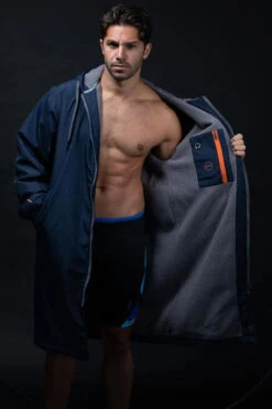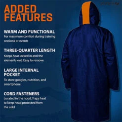 - Three-quarter length, fleeced jacket to keep you warm pre or post training or racing